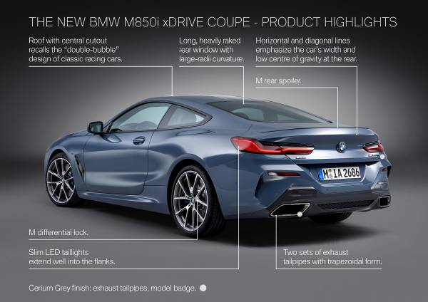 Dopo una lunga attesa ecco la versione definitiva ed ufficiale della nuova BMW Serie 8, che torna ad una distanza di quasi 30 anni (era il 1989) dalla sua predecessora. Con dimensioni inferiori alla BMW Serie 6, la BMW Serie 8 diventa un concentrato di sportività e tecnologia. Lunga 484 cm, larga 190 ed alta 134 cm, la nuova BMW Serie 8 dovrebbe sostituire la Serie 6 ed arrivare nelle concessionarie della Casa bavarese a partire dal prossimo mese di novembre.