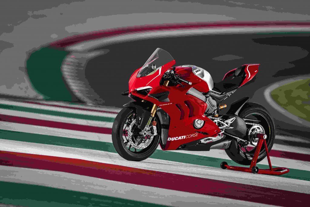 Proprio dalla Ducati V4R vogliamo cominciare. Questa sarà la moto da sogno di molti appassionati. Il prezzo di vendita sarà di 40.000 euro. Rispetto alla precedente versione sono state riviste sospensioni, motore e carena. Una moto nuova insomma. Tanto è stato preso dal mondo delle competizioni, Superbike in primis. Il motore e il Desmosedici Stradale R da 998 cm3, dotato di un’erogazione fluida e corposa ai bassi regimi che lo rende sfruttabile anche su strada. Più leggero del 1.103 garantisce una massa totale della moto di 193 kg. La potenza totale è di 221 CV erogati a 15.250 giri/minuto, 2.250 giri/minuto più in alto rispetto al picco di potenza massima del motore V4 da 1.103 cm3. Grazie allo scarico opzionale Ducati Performance by Akrapovič, la V4R può toccare addirittura i 234 CV. Ecco le specifiche tecniche: