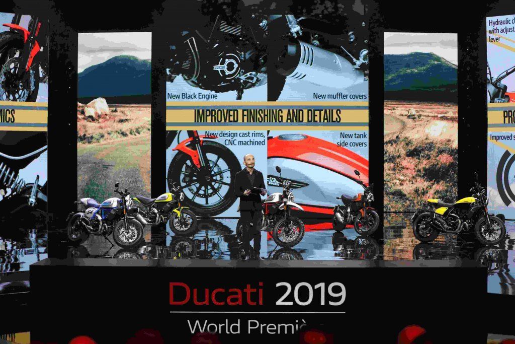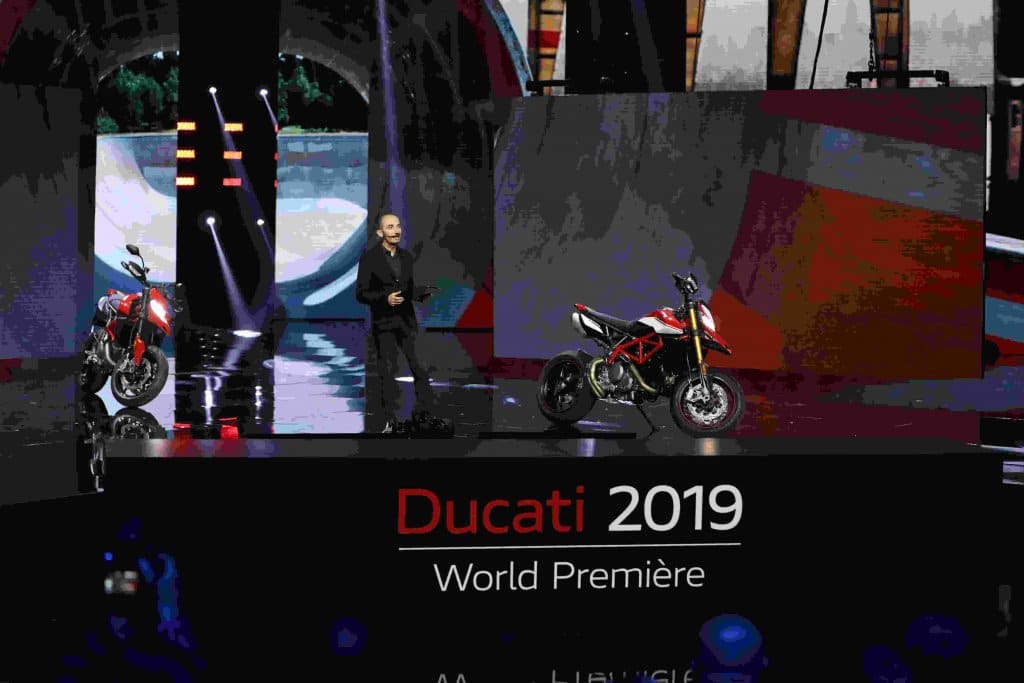 Le sue sono state parole di ottimismo e di una crescita globale del marchio suggellata anche dagli ottimi risultati nel motorsport. Ecco quanto detto: “Ducati ha raggiunto una straordinaria maturità – ha dichiarato Claudio Domenicali aprendo la Ducati World Premiere 2019 – e rappresenta nel mondo alcuni dei migliori aspetti del Made in Italy. Basata sui valori fondamentali di Style, Sophistication e Performance, la nostra azienda ha oggi una gamma estremamente moderna e ampia. Quest’anno, oltre al primo importante intervento su tutta la gamma Scrambler dalla nascita, si rinnovano completamente il Diavel e la Hypermotard, due moto molto amate dagli appassionati del nostro marchio.